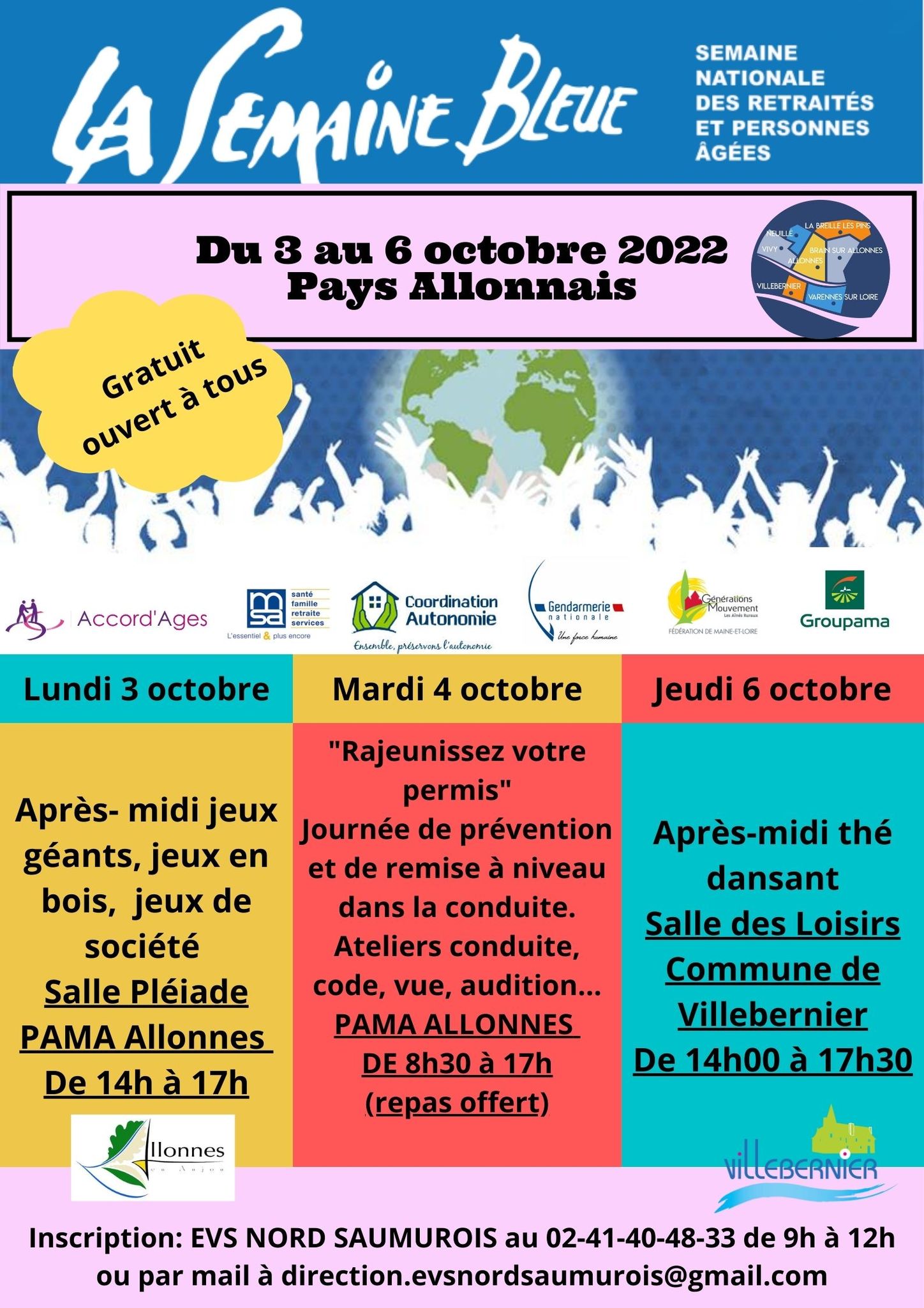 Dans le cadre de la Semaine Nationale des retraités et personnes âgées, trois évènements vous ont été proposés dans le pays Allonnais.